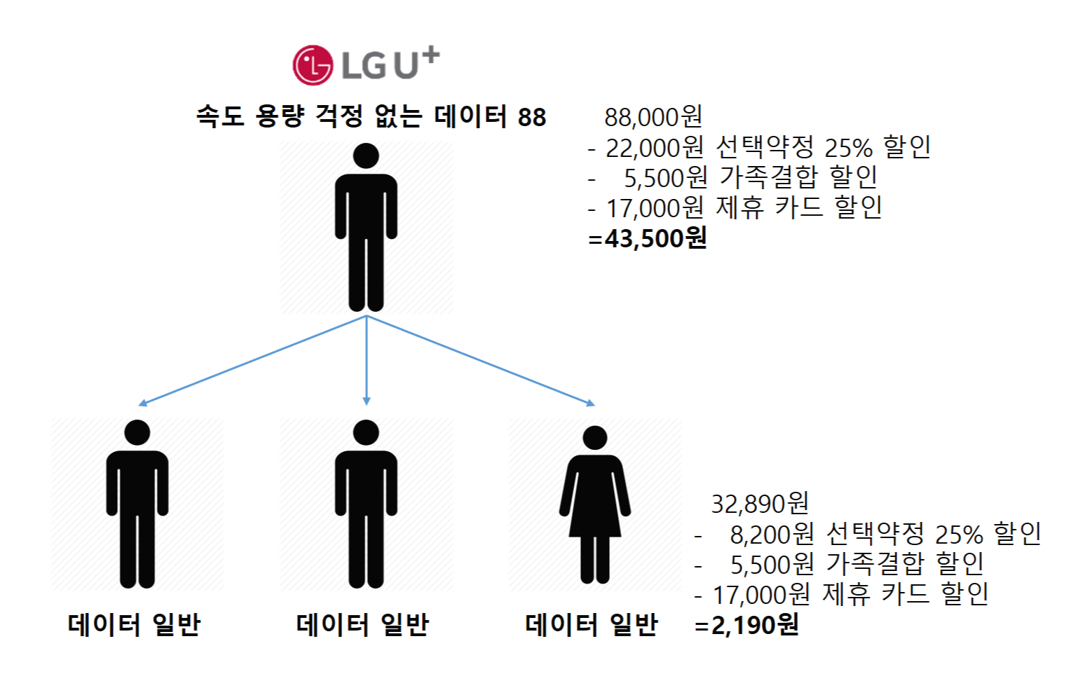 자! 그런데 우리가 조금만 노력하면 '가족할인'과 '데이터 주고받기', '카드할인'으로
