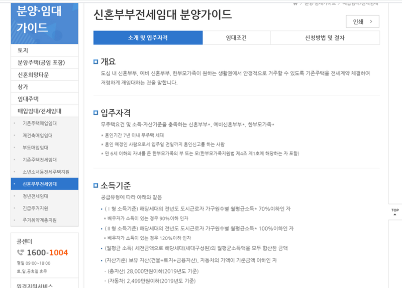 - 소득: 평균소득보다 적어야 한다. 2019년 기준으로 월평균 소득이 378만 원이 넘지 않아야 한다.