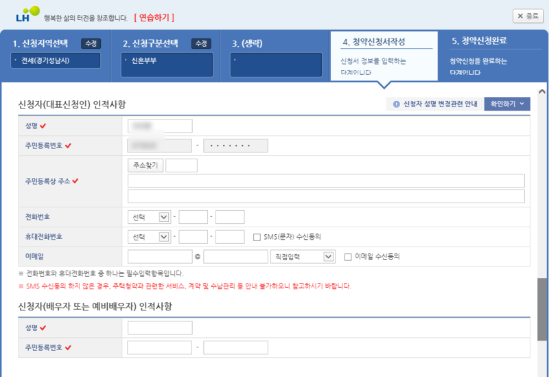 자 이제 신청자와 배우자의 인적 사항만 작성하면 끝나갑니다.