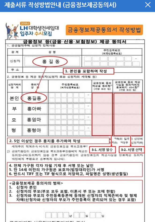 - 금융정보제공동의서: 여기서 중요한 점은 내가 부모님 밑에서 거주하는 것으로 되면 부모님 재산까지 함께 검색되어 2억 8천만 원이 넘으면 탈락되니, 꼭 세대 분리하고 세대주로서 신청해야 한다.