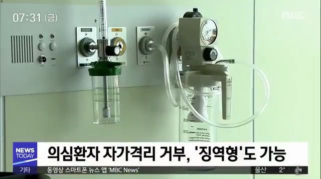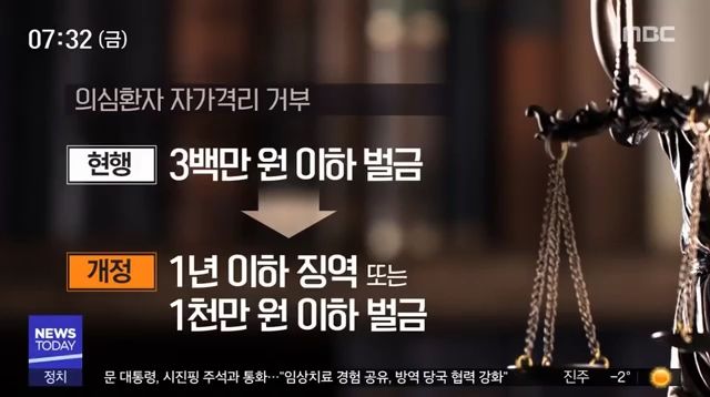 - 자가격리 이행 거부 시 벌금 1000만 원 이하 또는 1년 이하의 징역