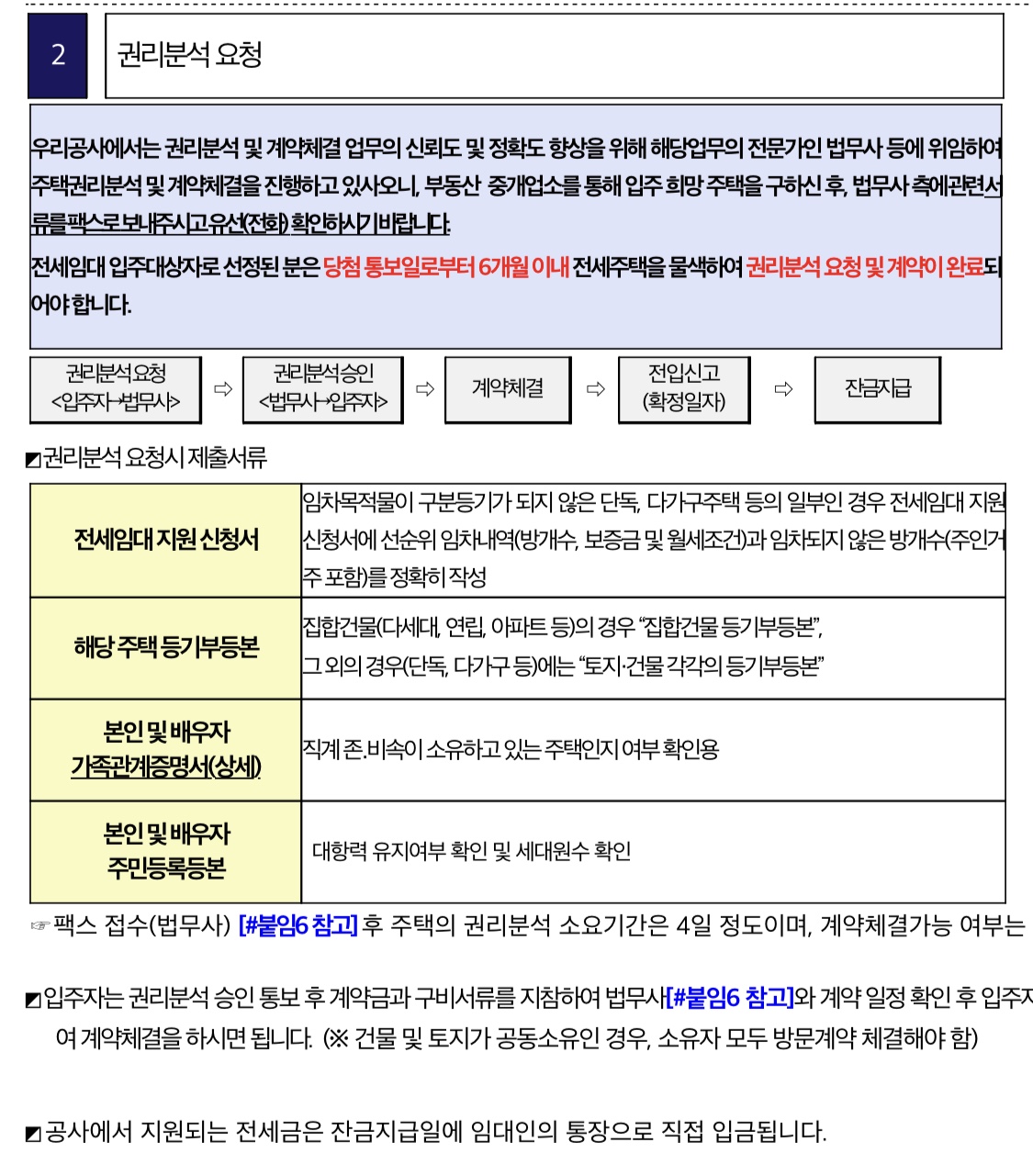 *계약금을 걸고 권리분석하는 일이 있어서는 안 된다. LH는 계약금을 보장해주지 않는다. 꼭 권리분석 후 적합 판단을 받으면 계약금을 걸어야 한다.